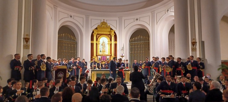El broche al acto del pregón lo puso la Banda de Cornetas y Tambores Santa Cruz de Almería, que interpretaron con su estilo propio las siguientes marchas procesionales: “El desprecio de Herodes”, “En tus lágrimas. Amargura”, “Al Dios del Amor”, “Mater Est Charitas” y la composición musical que se estrenó adentrada la gélida y oscura noche del sábado cuaresmal: “Prendido”.