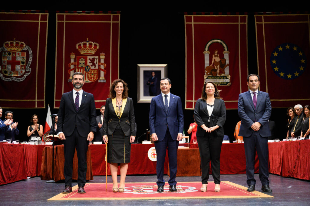 Además de ambos exalcaldes, Vázquez se ha visto también arropada en este acto, entre otros, por el presidente de la Junta de Andalucía y del PP Andaluz, Juanma Moreno; los Consejeros de Agricultura y Justicia, Carmen Crespo y José Antonio Nieto, del presidente provincial, Javier Aureliano García, además del subdelegado del gobierno, José María Martín, y la delegada del Gobierno de la Junta en Almería, Aránzazu Martín. Ante ellos, la nueva alcaldesa se ha comprometido a “reforzar” los lazos institucionales en beneficio de la ciudad de Almería, sus necesidades y sus proyectos. En este sentido ha querido poner en valor “el interés y respaldo mostrado por la Junta de Andalucía, con Juanma Moreno como Presidente, un cambio de actitud que va a ser determinante en el futuro de nuestra ciudad”, ha asegurado.
