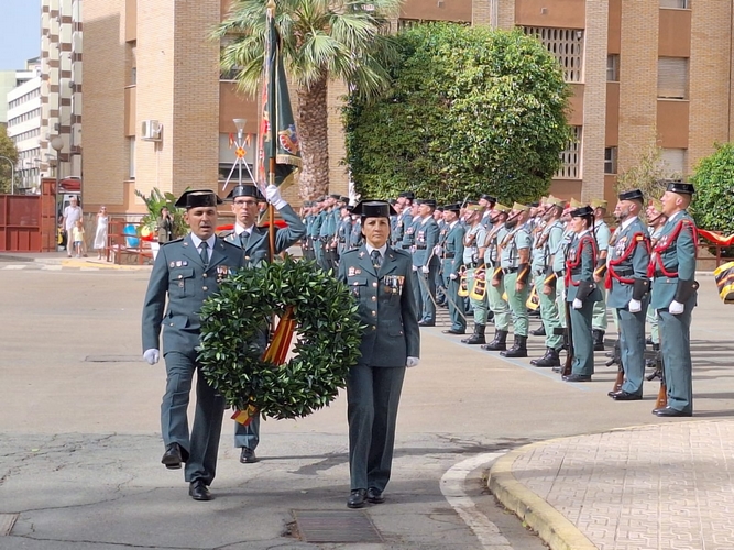 Tras el homenaje a los caídos y el himno de la Guardia Civil, el acto ha finalizado con el desfile de la formación en el patio central de la Comandancia.