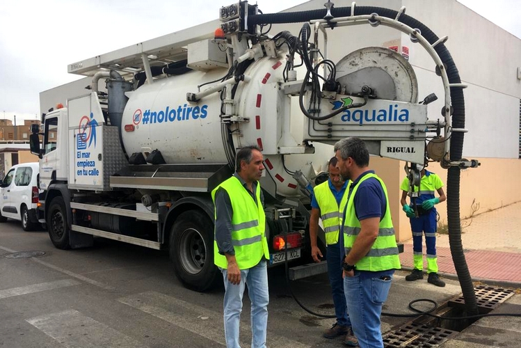 El objetivo de estos trabajos es desatascar las rejillas y conducciones de agua sucia para asegurar que, cuando llueva, puedan evacuar el agua de las calles y evitar inundaciones, transportándola hasta las estaciones de depuración. La limpieza de las rejillas de los imbornales se realiza manualmente con vehículos de limpieza industrial. Los trabajadores de Aqualia recogen los residuos extraídos y los llevan a un vertedero. Finalmente, insertan agua a presión en el imbornal para asegurarse de que el atasco ha desaparecido.