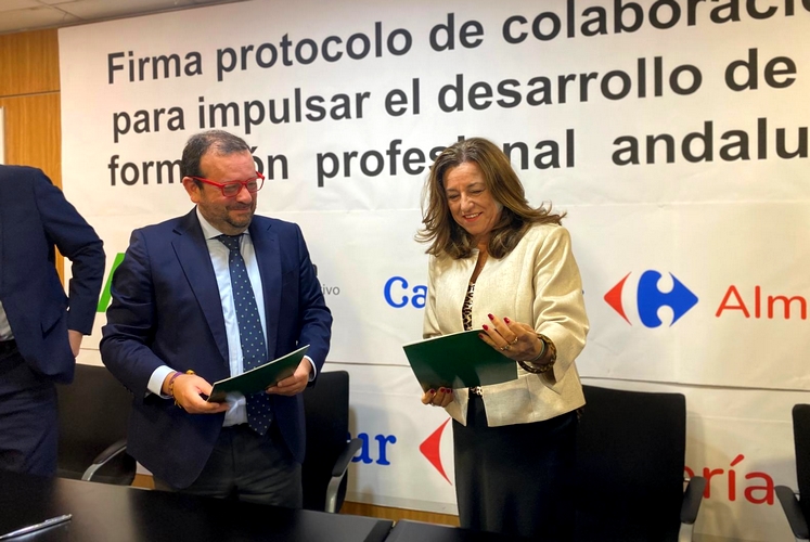 La consejera María del Carmen Castillo ha firmado un convenio de colaboración con Carrefour para impulsar la fase de formación en empresa