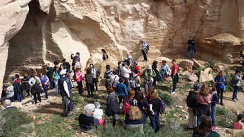 La ruta ha partido esta mañana a las 9.30 horas desde el Ancla, para continuar por la Avenida del Mar, recorriendo las laberínticas calles de esta zona tan peculiar de la ciudad, para llegar, tras un recorrido casi senderístico hasta las Canteras Califales.