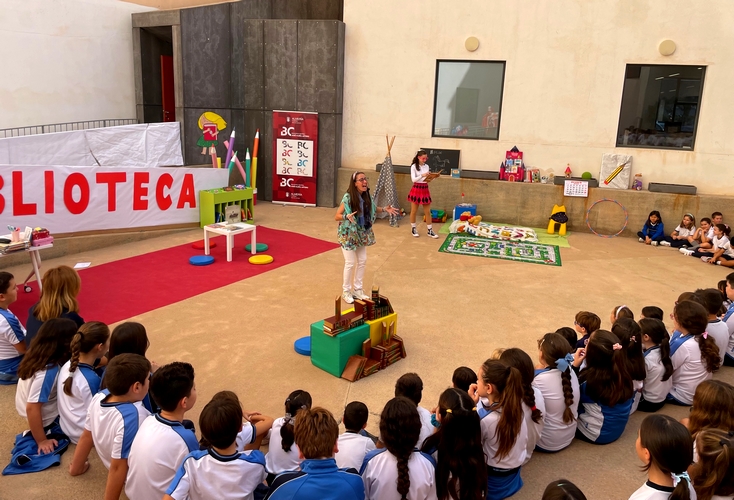 La Biblioteca Central José María Artero ha tenido hoy una doble celebración: el Día de las Bibliotecas y el quinto aniversario de su apertura. Y lo ha hecho con actividades de fomento de la lectura, a través de una didáctica representación teatral, celebrada en el patio central, al que han asistido más de 270 escolares.