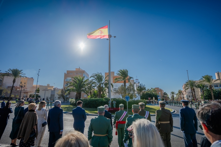 El alcalde de Roquetas de Mar, Gabriel Amat, ha destacado su satisfacción por acoger en el municipio una ceremonia “en la que se pone en valor el orgullo de ser español, el respeto a nuestros símbolos nacionales y el compromiso con los valores que nos unen como sociedad”.