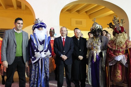 A las 17.45 horas la comitiva ha salido desde la Alcazaba de Almería dirección a la Plaza Vieja donde han sido recibidos por el alcalde de Almería, Luis Rogelio Rodríguez-Comendador, por el Obispo de Almería, Monseñor Adolfo González Montes, y por el concejal de Fiestas Mayores, Juan José Alonso, retomando la tradición de hacer una recepción para Sus Majestades en el propio Consistorio almeriense. Allí, todos los presentes han podido escuchar el discurso de los Reyes Magos que ha leído, en nombre de todos, el Rey Gaspar: “El Rey Melchor nos ha recordado al Rey Baltasar y a mí, y yo ahora a vosotros, que todos debemos ‘vivir sencillamente para que otros, sencillamente, puedan vivir’. Por su parte, el Rey Baltasar, también me ha insistido en que os diga que ‘Donar lo cambia todo’, porque donar es darse y compartir es una excelente manera de vivir porque la solidaridad es la que hace este mundo mejor”, ha explicado a los niños Su Majestad.