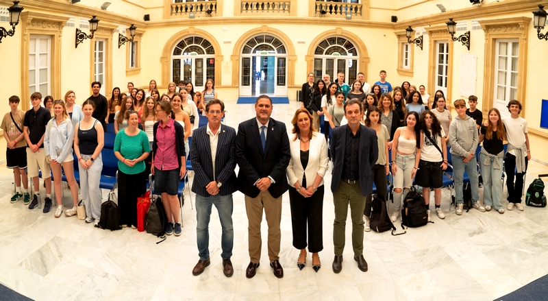 El delegado territorial de Desarrollo Educativo y FP, Francisco Alonso, ha recibido este lunes, junto a la diputada provincial de Iniciativas Europeas, Esther Álvarez, a profesores y alumnos de Wiesloch (Almemania), Lisboa (Portugal) y Budapest (Hungría) que se encuentran haciendo una inmersión lingüística y cultural en la provincia de Almería en el marco del Programa Educativo Europeo Erasmus+ del Instituto de Enseñanza Secundaria Bahía de Almería.