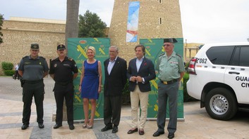 El subdelegado del Gobierno en Almería, Andrés García Lorca, y el coronel de la Comandancia de la Guardia Civil de Almería, Francisco Jiménez, han presentado las principales novedades del Plan Verano 2016 que está operativo desde el 1 de julio y finaliza el 30 de agosto. Al acto, celebrado en la explanada de acceso al Castillo de Santa Ana en Roquetas de Mar, también han acudido la teniente de alcalde de Roquetas de Mar, Eloísa Cabrera, y el concejal de Turismo y Playas de Roquetas de Mar, Luis Miguel Carmona.