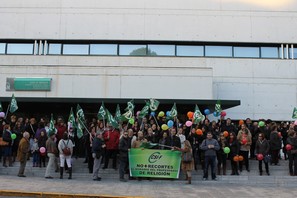 Más de un centenar de profesores de Religión denunciaron ayer, día 10 de diciembre, en una concentración a las puertas de la Delegación Provincial de Educación los recortes que la Junta de Andalucía pretende llevar a cabo, en concreto, con la reducción de la carga lectiva de una hora y media a 45 minutos semanales de esta materia, tal y como ha publicado la Consejería de Educación en los Proyectos de Decreto y Orden e Desarrollo de la LOMCE.