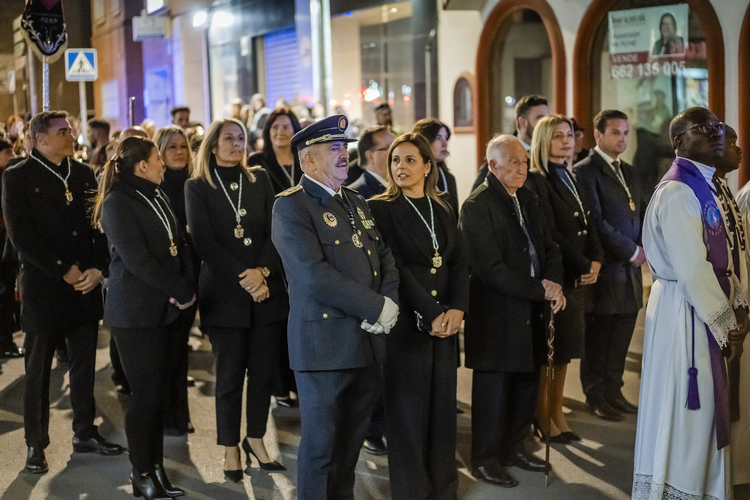El alcalde y miembros de su junta de gobierno de Roquetas de Mar siempre presentes en cada paso junto al paso, y llenando las calles de pasión y fe.