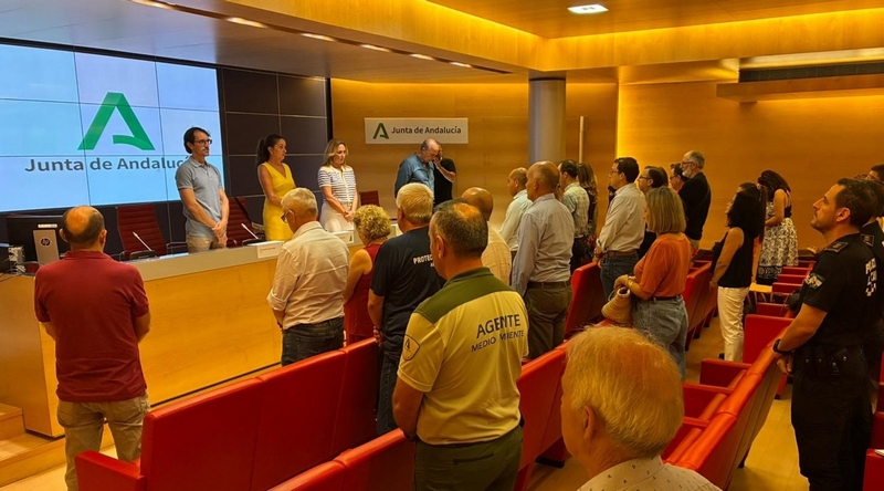 La jornada presidida por la delegada de la Junta de Andalucía en Almería, Aránzazu Martín, con los representantes municipales de 103 municipios para abordar los planes locales de emergencia ha arrancado con un respetuoso minuto de silencio en memoria y señal de duelo por la muerte de Fina Cuerva, la funcionaria atropellada en la Rambla Federico García Lorca de Almería este jueves, quien estaba vinculada desde hace décadas a la Delegación Territorial de Agricultura.