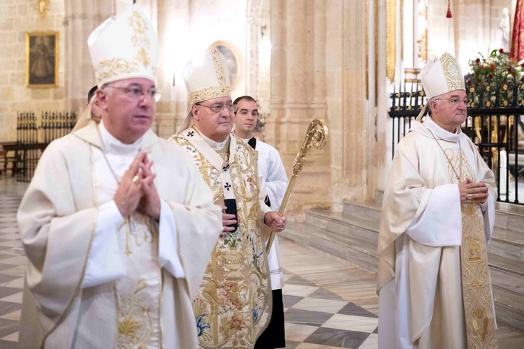 La alcaldesa de Almería, María del Mar Vázquez, junto a varios miembros del Equipo de Gobierno, ha asistido esta tarde a la misa oficiada por Monseñor José María Gil Tamayo, Arzobispo de Granada, con motivo del cierre del Año Santo de 2024, celebrado en Almería en conmemoración del quinto centenario de la colocación de la primera piedra de la Catedral almeriense.