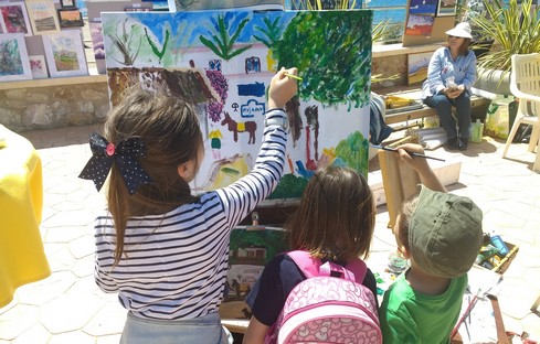 Los artistas han estado de acuerdo en que el dinero recaudado en este reinicio de la actividad sea utilizado para un banco en el Paseo Marítimo de Mojácar, en la zona donde realizan la exposición y en el que instalarán una placa en su honor.