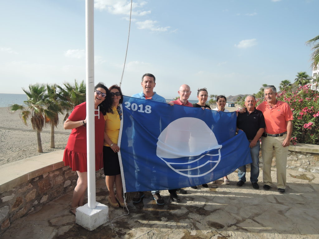 equipo de Gobierno del Ayuntamiento de Mojácar ya ha izado las tres banderas azules que ondean en las playas de Ventanicas, Piedra Villazar y Maina de la Torre.
