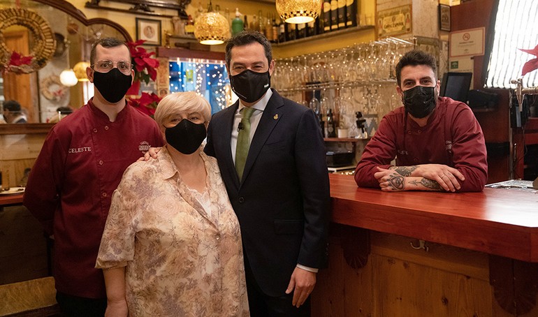 Moreno ha ofrecido su Mensaje de Navidad desde la ‘Taberna Granados’, en Granada capital. Desde allí, ha lanzado un mensaje de apoyo al sector de la hostelería y la restauración, uno de los que peor lo han pasado durante la grave crisis generada por la Covid-19. De este sector, ha reconocido su audacia para adaptarse a la nueva realidad “de manera ejemplar”.