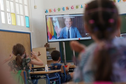 El presidente ha mantenido un encuentro telemático con responsables de centros escolares de las ocho provincias andaluzas el día en que retoman su actividad más de 2.500 colegios y 60.600 docentes.