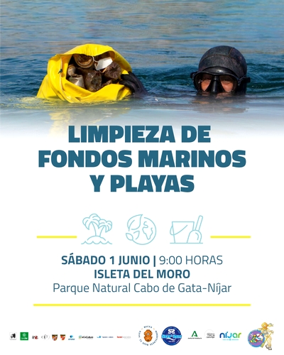 El Área de Turismo y Playas del Ayuntamiento de Níjar, junto con Club Buceo Mindfulness y Centro de Buceo Sea&Sun, participará en una nueva jornada solidaria de limpieza de fondos marinos y playas del Parque Natural de Cabo de Gata-Níjar. En esta ocasión, tendrá lugar el próximo sábado, 1 de junio, en la Isleta del Moro.