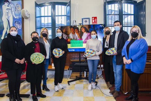 La alcaldesa de Níjar, Esperanza Pérez Felices, junto a miembros del equipo de gobierno han recibido en el salón de plenos del consistorio al joven director nijareño, Ian de la Rosa, recientemente nominado a los Premios Goya 2022 por su cortometraje “Farrucas” y al que se le ha rendido homenaje por sus logros profesionales.