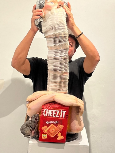 Félix Semper es mundialmente conocido por su enfoque innovador, que redefine la escultura. Sus obras, que a primera vista parecen estar hechas de materiales sólidos como mármol o madera, están en realidad elaboradas con miles de hojas de papel apiladas. Estas esculturas se despliegan y estiran, creando una experiencia dinámica que difumina la línea entre objeto y performance. Su arte lúdico se ha vuelto viral en plataformas digitales, donde ha alcanzado a millones de personas.