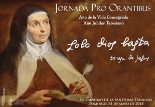 Este año la Jornada Pro Orantibus –por los contemplativos- tiene un marco muy singular: por una parte, el Año de la Vida Consagrada; por otra, el V centenario del nacimiento de santa Teresa de Jesús, una gran contemplativa, maestra de oración, además de reformadora del Carmelo. Por eso, el lema elegido para la Jornada está tomado de una de las palabras más conocidas y de más calado espiritual de la Santa de Ávila: “Sólo Dios basta”.