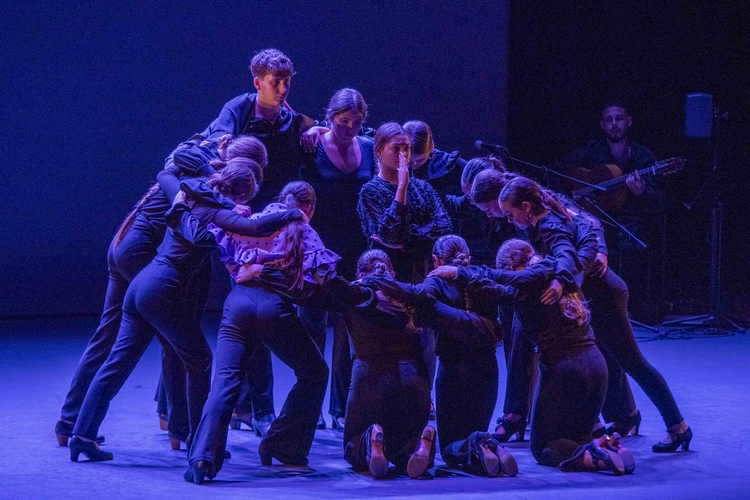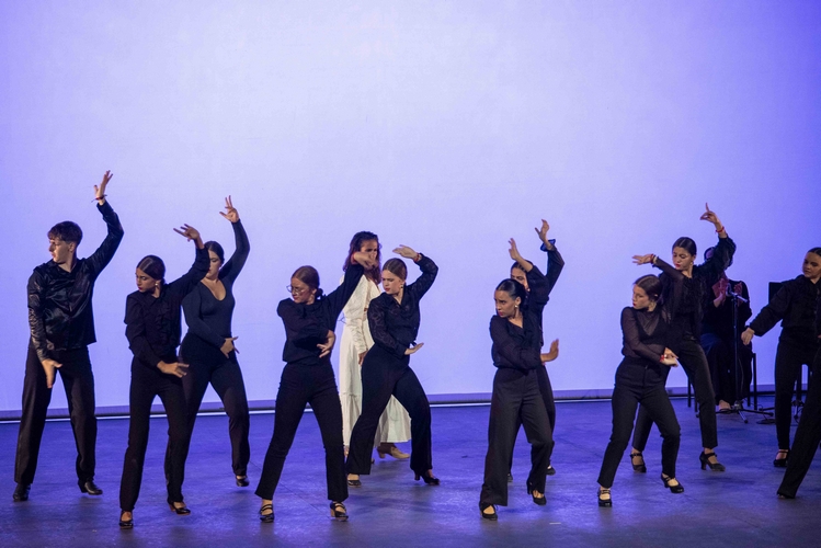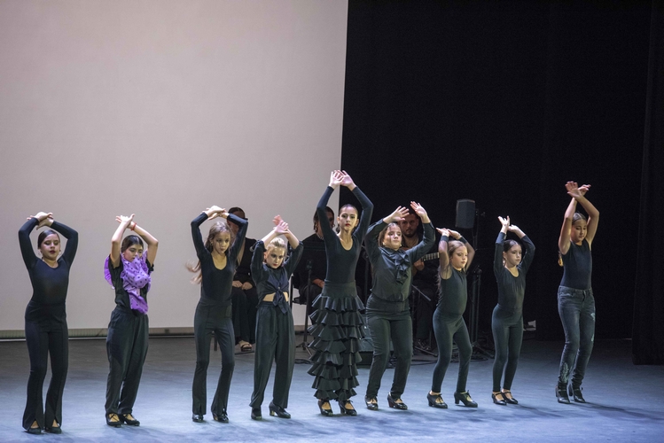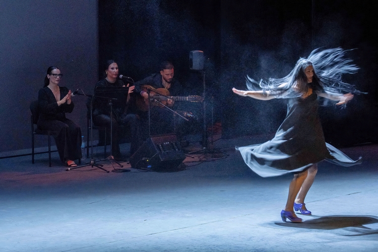 A continuación, sobre las tablas, la bailaora huercalense Inés de Inés y su compañía, con la colaboración de Ana Mar al cante y Antonio de Quero a la guitarra, desplegaron emoción y sensibilidad con un espectáculo flamenco sobrio y muy efectista en algunos momentos. Tanto desde la elección de las letras –con ese “reloj no marques las horas”-, como en el trabajo solista de Inés o el coral de todo el grupo.