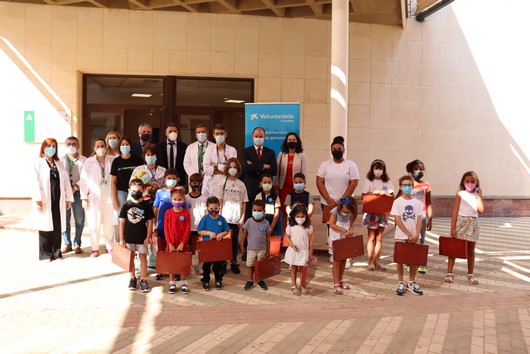 En la jornada de este miércoles se ha llevado a cabo la entrega de un obsequio a los niños y niñas que han participado en el certamen, en un acto celebrado en el Salón de Actos del hospital, que ha contado con la presencia del delegado territorial de Salud y Familias en Almería, Juan de la Cruz Belmonte, junto al director gerente de la Agencia Pública Sanitaria Poniente, Pedro Acosta, la directora de Área de Negocio de Caixbank en Almería, María del Mar Peláez, y el director comercial de Red de Caixabank de Málaga, Almería, Campo de Gibraltar, Ceuta y Melilla, Gerardo Cuartero; junto a profesionales del Hospital y voluntarios de Caixabank.