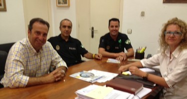 La alcaldesa de Pechina, Mª Ángeles Morales, junto con dos de los agentes de la Policía Local pechinera, Francios Yebra y Joaquín Juárez, han mantenido esta semana una reunión con el Jefe Provincial de Tráfico de Almería, José María Méndez Olivares, con el objeto de ampliar al máximo la colaboración entre ambas instituciones, sobre todo en lo concerniente a temas de control y mejora de la seguridad vial en el municipio.