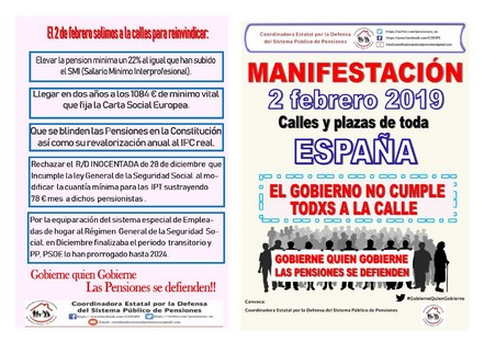 - Que se admita a esta Coordinadora como interlocutor social válido para negociar con el Gobierno un Sistema Público de Pensiones de futuro.