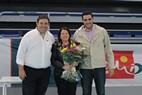 • Tras la conclusión de la final, y, por tanto, del torneo, el concejal de Deportes de Almería, Juan José Alonso, y el delegado provincial de la Federación Andaluza de Baloncesto, José Francisco Cara, entregaron a campeón y subcampeón sus trofeos, y el edil obsequió a la viuda del recordado José María Martínez Cañizares un ramo de flores.