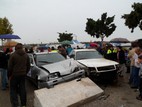 La parte práctica se realiza a continuación, sobre las 11.00 horas, y constará de dos partes: una exhibición real de impacto de tráfico y unos talleres programados. La primera parte consistirá en la demostración-simulación de un accidente de tráfico en el exterior del Parque. Para dicha simulación se “lanzará” un vehículo contra otro a 35-40 km/h. En los vehículos habrá instaladas dos sillitas, una bien sujeta y la otra mal instalada y un muñeco de unos 10 kg de peso sin sujeción. Con posterioridad al impacto, se observarán los daños en los vehículos y cómo quedan el muñeco y las sillitas tras el mismo. Este taller estará a cargo de la Asociación de Rescate en Tráfico y Emergencias y de los Bomberos de Ayuntamiento de Almería, colaborando Policía Local de la capital en la disposición del Tráfico y seguridad del evento. Está previsto que esta actividad práctica tenga una duración máxima de tres cuartos de hora.