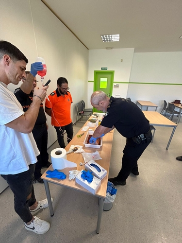 En esta formación, agentes de la Policía Local y también de la Guardia Civil, junto con voluntarios de Protección Civil, han podido llevar a cabo prácticas en el uso de torniquetes, vendajes israelíes, empaquetamiento de heridas y otros dispositivos diseñados para su utilización ante situaciones críticas en las que se producen hemorragias y heridas exanguinantes.