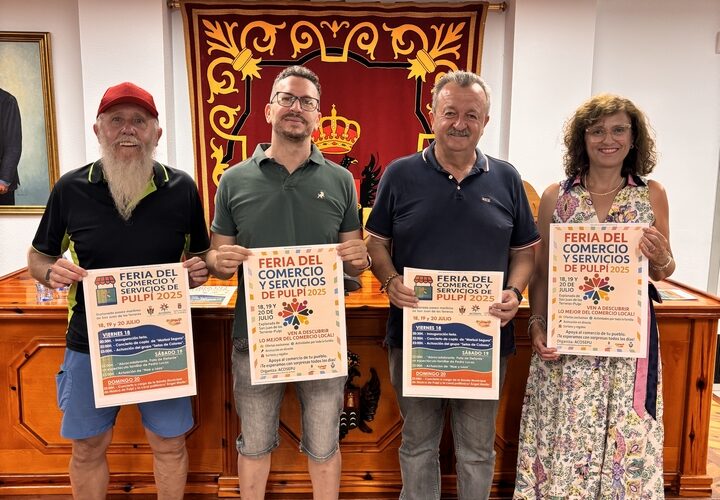 Esta mañana hemos presentado en el salón de plenos del Ayuntamiento de Pulpí, la I Edición de la Feria del Comercio y Servicios de Pulpí 2025, organizada por ACOSEPU (Asociación Comerciantes y Servicios de Pulpí) con la colaboración del Ayuntamiento y Diputación de Almería, y que por primera vez en nuestro municipio se llevará a cabo este fin de semana en la explanada del paseo marítimo de San Juan de los Terreros, desde el viernes 18 al domingo 20 de julio.
