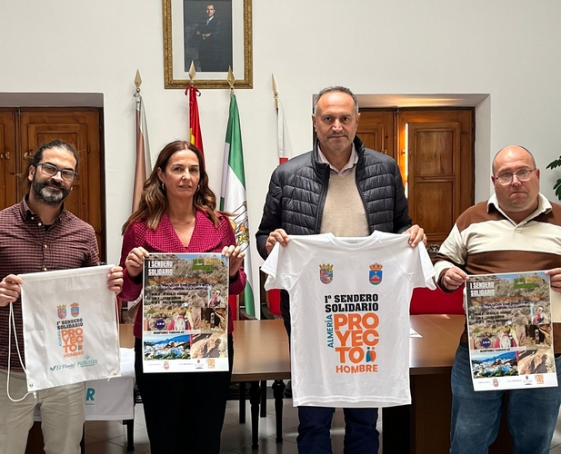 El alcalde Baldomero Martínez, junto con el concejal de deporte, José Cortés y la directora de Proyecto hombre, Almería Ana Mazón han presentado el cartel de la actividad que se celebrará el día 14 de diciembre, domingo.