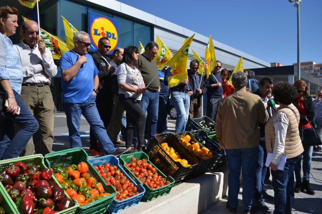 lunes a las puertas de un supermercado alemán en Almería han protestado los agricultores de Coag. El motivo de escoger este espacio ha sido porque se está celebrando el Consejo de Ministro de Agricultura en Luxemburgo donde el Comisario va a presentar la primera normativa en firme a nivel comunitario para regular la cadena agroalimentaria. En este sentido, la distribución alemana está presionando/chantajeando al Comisario para que esta normativa sea descafeinada al fin de que los estados miembros puedan ‘evitarla’.