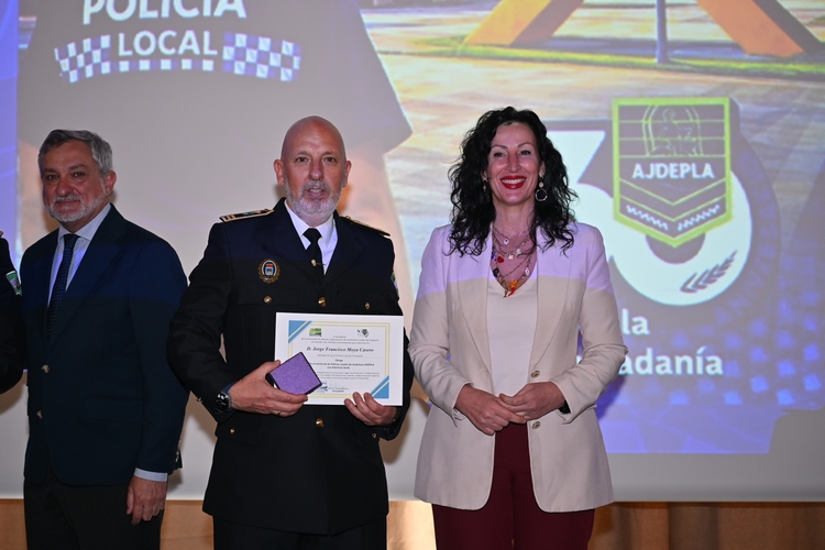 En la primera jornada del día 24 han recibido la Medalla al Mérito con distintivo Blanco de las Policías Locales de Andalucía, AJDEPLA, la directora de la IESPA, Asunción Grávalos; el jefe de Servicio de Coordinación de las Policías Locales de la Junta de Andalucía, Francisco Nebrera; el coronel, Juan Rodríguez Claudio, ex subdirector de emergencias de Andalucía; el presidente de AJDEPLA, Juan Ferrer; y el jefe de la Policía Local de Roquetas de Mar, Miguel Ángel López Rivas. Además, han sido condecorados una treintena de jefes y mandos de la Policía Local que han destacado por sus servicios policiales y también por los años de pertenencia y lealtad a esta asociación.