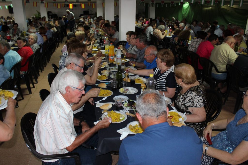 de 400 mayores del municipio han participado hoy en la comida de convivencia organizada por la Asociación de Pensionistas “Pintor Pedro Antonio” de Pulpí, en colaboración con la Concejalía de Mayores del Ayuntamiento de Pulpí. La jornada, que ha contado con la presencia del alcalde de Pulpí, Juan Pedro García, y de concejales del Equipo de Gobierno, se ha celebrado en el Sótano del Centro de día “Encarnación y María Peregrín” y ha comenzado con la degustación de una paella para disfrutar, a continuación, de la música en directo del Dúo “Ritmo Latino” y “Epsylon”.