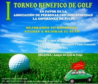 La Asociación de “Amigos del Golf de Pulpí”, en colaboración con cerca de veinte empresas y el Área de Deportes del Ayuntamiento de Pulpí, ha organizado la celebración del “I TORNEO BENEFICO DE GOLF”, a favor de la Asociación de personas con Discapacidad, “La Esperanza” de Pulpí, con el lema –MEJORANDO TU HÁNDICAP, AYUDAS A MEJORAR EL SUYO-.