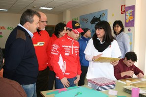 El piloto de Moto3 Juanfran Guevara visitó en la jornada de ayer las instalaciones de la Asociación de Personas con Discapacidad “La Esperanza” de Pulpí – Casa Tejá en apoyo a la carrera benéfica que se celebrará en el municipio este domingo, 25 de enero, y cuyos fondos se destinarán íntegramente a la asociación. El deportista lorquino hizo un amplio recorrido por el centro, donde la Presidenta de la asociación, Mª Rosa Segura, y la Directora de Casa Tejá, Mª Carmen Ortega, le explicaron los servicios que se prestan actualmente a los usuarios. El momento más emotivo de la jornada lo protagonizaron los chicos y chicas de Casa Tejá, que esperaban con impaciencia la visita del piloto, quien les firmó autógrafos y se fotografió con ellos. Los usuarios quisieron hacerle entrega de un plato de cerámica decorado por ellos mismos a modo de agradecimiento por su visita, mismo obsequio que recibió el representante de la empresa Citroplant, uno de sus patrocinadores.