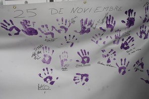 PULPÍ.- Huellas moradas y mensajes de ‘Basta Ya’ para luchar contra la violencia de género