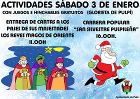 PULPÍ.- La entrega de cartas a los pajes de los Reyes Magos de Oriente y la Carrera Popular “San Silvestre Pulpileña”, entre las actividades de mañana sábado 3 de enero