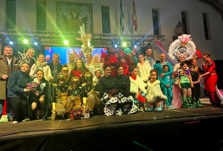 Tras el desfile, el escenario instalado en el Cotillón de Pulpí acogió la entrega de reconocimientos a todas las peñas participantes, así como el reconocimiento al Personaje del Carnaval 2025, que este año ha recaído en la fundadora de la Escuela de Baile María Teresa Aragón Lazareno.