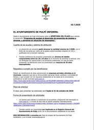 Podrán ser beneficiarios de estas subvenciones las empresas privadas ubicadas en el municipio, cualquiera que sea su forma jurídica (personas físicas, jurídicas o comunidad de bienes), y que cumplan con los requisitos establecidos en las bases de la convocatoria, publicada en la web municipal www.pulpi.es :