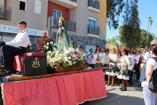 La jornada de ayer domingo, 7 de mayo, se inició con la concentración de caballos, carros y carrozas a la entrada de La Fuente, desde donde partieron dirección a Pulpí. Sobre las 17:30 horas, tuvo lugar la salida en romería desde la Iglesia San Miguel de Pulpí, donde romeros y autoridades, con el alcalde de Pulpí, Juan Pedro García, a la cabeza, acompañaron a la Virgen de La Fuensanta junto con el Coro Rociero de Pulpí. Al llegar a la Fuente, los vecinos de la pedanía portaron a hombros a la Virgen, continuando la romería hasta el Parque de La Fuente, donde tuvo lugar la Santa Misa Rociera en honor a Ntra. Sra. La Virgen de La Fuensanta, oficiada por el párroco de Pulpí, Alberto Murillo.