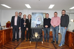 El Salón de Plenos del Ayuntamiento de Pulpí ha acogido este viernes la presentación del Cartel Anunciador y la Programación de la Semana Santa 2015, en un acto en el que han estado presentes el Alcalde de Pulpí, Juan Pedro García; el concejal de Cultura, Juan Bautista López; la Presidenta del Paso Negro, Mª Carmen Díaz; el Presidente del Paso Morao, Antonio Luis Díaz; el párroco de Pulpí, Antonio Flores; y el representante de la Agrupación Musical “San Miguel Arcángel”, Alejandro Baraza. Este año, el Paso Negro de Pulpí ha sido el encargado de la elaboración del Cartel Anunciador de la Semana Santa 2015, que queda representado con la imagen de la Stma. Virgen de los Dolores.