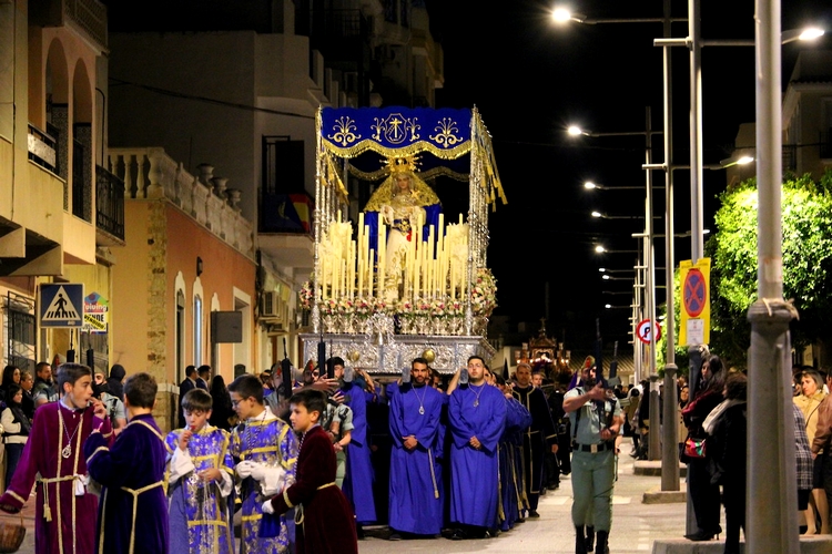 A las cinco de la tarde saldrá el Paso Negro infantil y a las 22 horas tomará las calles la venerada Virgen de los Dolores, bajo la luz de las velas y portada por las mujeres del pueblo.