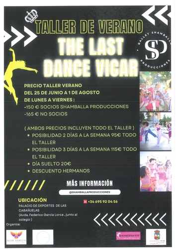 Otra de las propuestas llega de la mano Ballet Shamballa y su campus de baile. Entre el 25 de junio y el 1 de agosto los participantes se formarán en disciplinas como ballet, danza moderna, diseño de vestuario o expresión corporal, entre otras. Impartido en el Palacio de Deportes de Vícar está dirigido a menores de entre 3 y 17 años.
