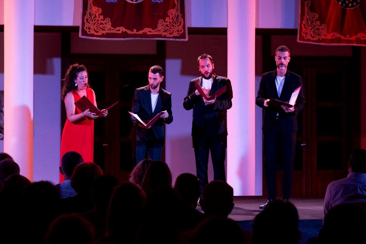 La formación Qvinta Essençia inició el pasado jueves con brillantez la XII edición del Festival de Música Antigua de Roquetas de Mar ‘Mare Musicum’. Este cuarteto formado por Èlia Casanova, soprano; Hugo Bolívar, alto; Martí Doñate, tenor y Pablo Acosta, bajo ofrecieron el programa ‘El sentir de mi sentido (Música y poesía amorosa del Siglo de Oro)’. Entre el público se encontraba el concejal de Cultura Daniel Salcedo así como los directores del Festival, Belinda Sánchez Capuchino y Miguel Ángel García.