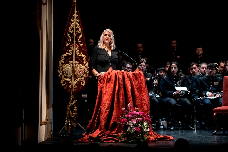 Con una bella prosa y una declamación llena de intensidad, la pregonera ha recorrido los diferentes pasos de la Semana Santa, deteniéndose en la Soledad, “Virgen bendita, 250 años siendo dueña de nuestros corazones” y ha resaltado el paso de los penitentes por las calles de la ciudad. “No me digan ustedes si no es mágico el momento en que nos sentimos unidos al que camina en silencio. Cuando también es nuestro el rezo del nazareno cuando su penitencia, es la mía, cuando sus pecados, los de mi pueblo”, apostilla.