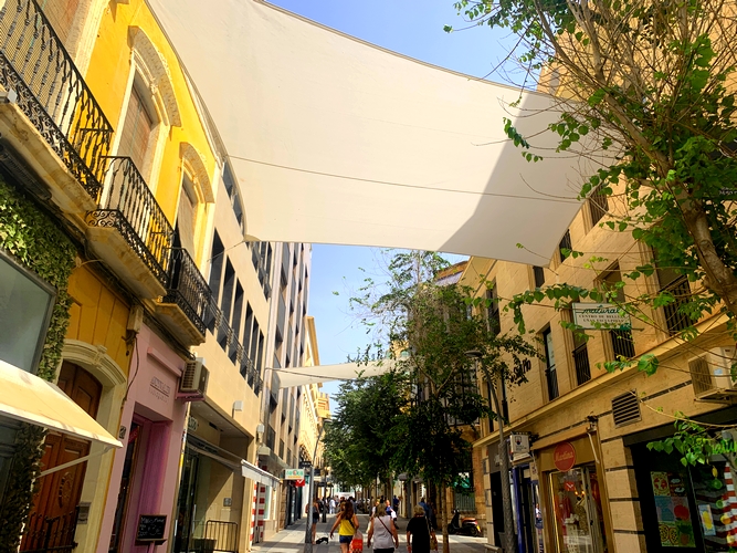 La inversión municipal en este proyecto, que contempla la instalación de anclajes, estructuras metálicas y toldos en un total de siete calles del Centro Histórico, supera los 600.000 euros, una actuación comprometida por el Ayuntamiento para este año con la que se pretende cubrir una superficie de 5.200 metros cuadrados y así evitar calor a los viandantes.