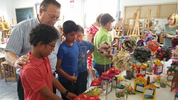 Este objetivo tiene su continuidad durante los meses de verano con la celebración de distintos talleres. Para los menores en edades de entre 6 y 11 años, el Programa ha desarrollado durante el mes de julio y mitad de agosto distintas actividades manuales con las que se les enseña a vivir un ocio sano. Los talleres han finalizado con una exposición de los trabajos realizados que fue visitada por el propio concejal.