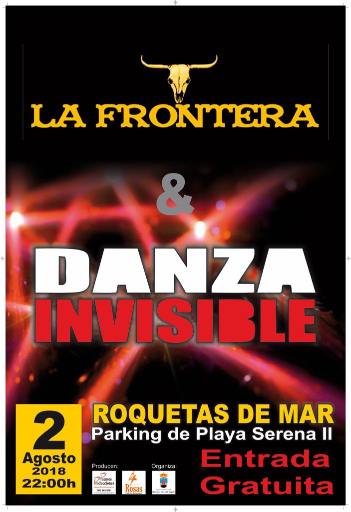 Danza Invisible y La Frontera llenarán de rock y diversión Playa Serena II el próximo viernes a las 22:00 horas. Se trata del segundo concierto de gran formato que se celebra en el municipio roquetero de forma gratuita. El año pasado, Café Quijano contó con 12.000 asistentes y el pasado fin de semana, la reconocida banda Sweet California llenó el recinto.